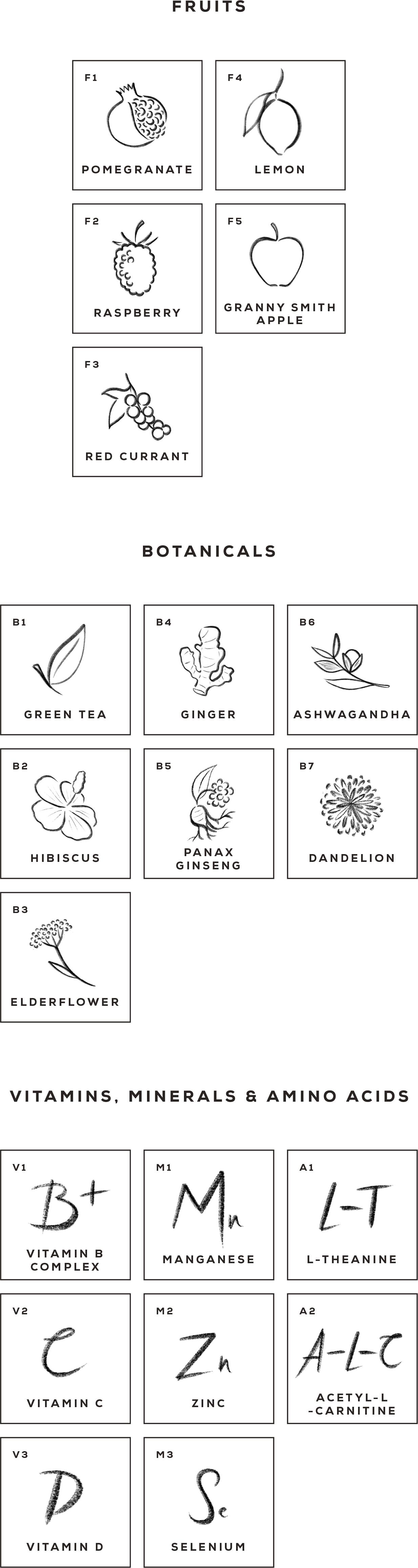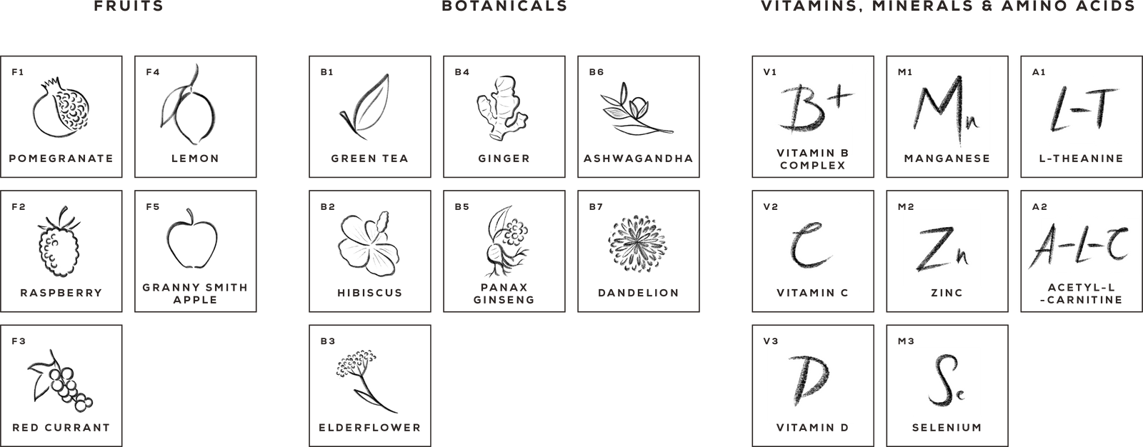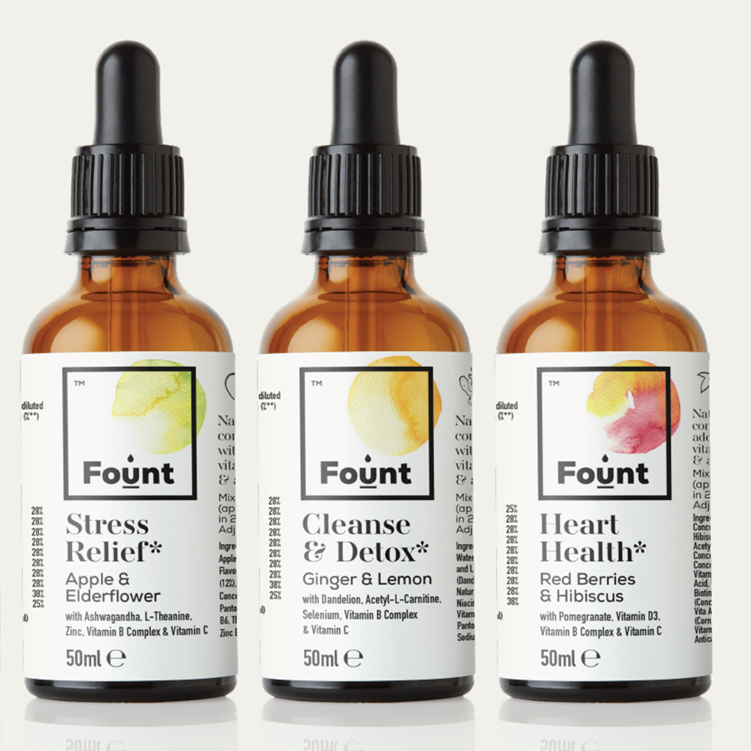Each Fount drink contains a carefully selected combination of fruit, natural botanicals, vitamins, minerals and amino acids.