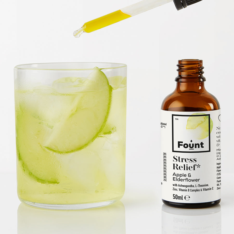 Add 2ml of Fount (3 half-full pipettes) to a glass or bottle of water: still, sparkling or hot!