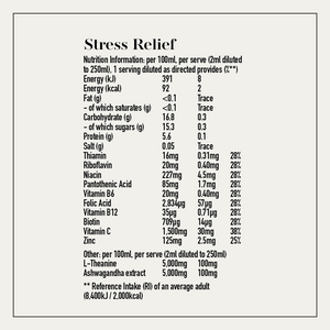 - Stress Relief: Apple & Elderflower- Granny Smith Apple and Elderflowers with Ashwagandha, L-Theanine, Zinc, Vitamin B Complex and Vitamin C.