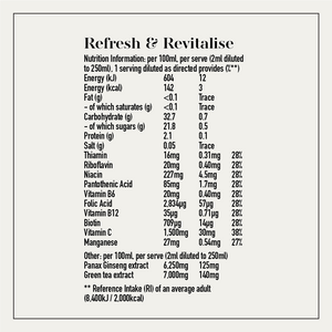 Naturally flavoured concentrated drink with added botanicals, vitamins, minerals and amino acids.
