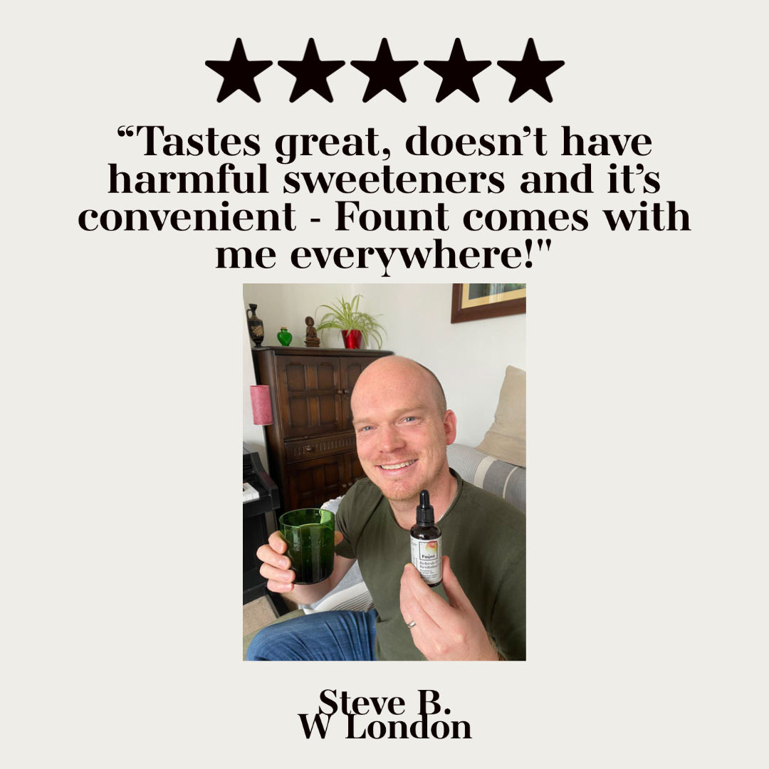 Each Fount drink contains a carefully selected combination of fruit, natural botanicals, vitamins, minerals and amino acids.